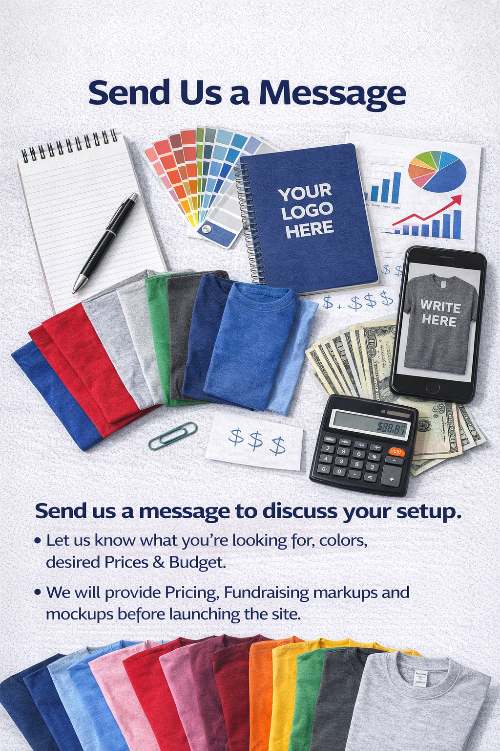 Choose what works best for your goals. Add a fundraising markup to raise money for your organization, or sell spirit wear at cost to keep prices low